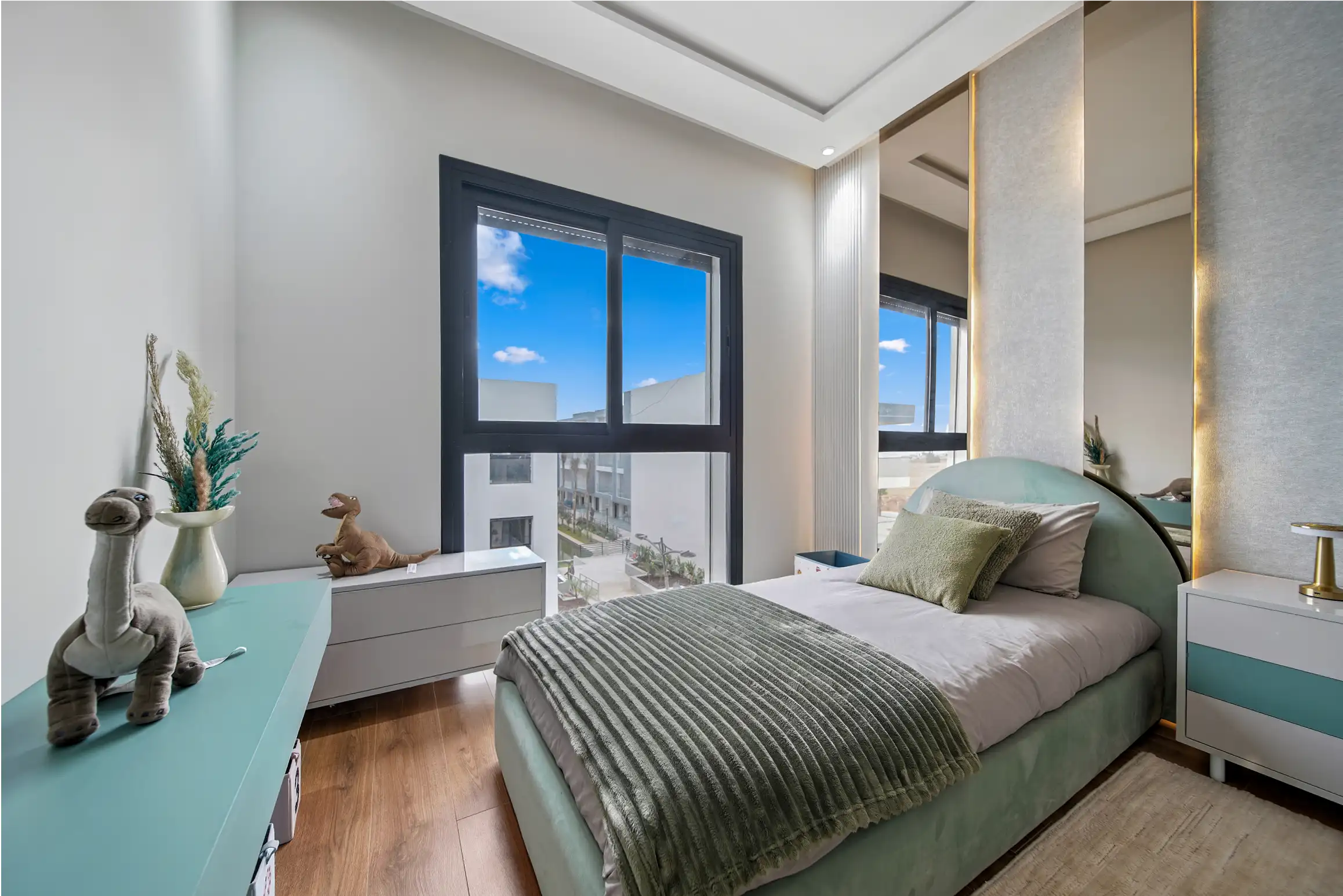 Garden View est une résidence fermée et sécurisée accessible uniquement aux habitants. Sa conception architecturale a été réalisée dans un souci de minimiser les vis-à-vis et d’offrir des vues dégagées, La totalité des appartements jouissent de terrasses couvertes généreuses, de vrais espaces de vie. La circulation des véhicules a été minimisée au sein de la résidence. Les façades d’immeubles profiteront d’une attention particulière, afin d’apporter une identité propre au projet GARDEN VIEW, en totale harmonie avec son environnement.